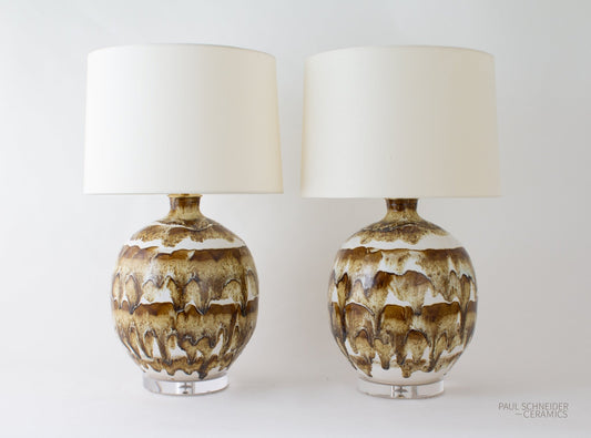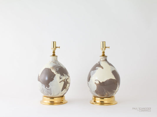 Bring calming, earthy tones to your workspace with lamps from this collection. The exquisite luxury combination of gold and brown on some pieces will be a perfect solution for offices with wooden furniture. For a dynamic and unique artistic expression that can inspire you, opt for one of our drip-banded lamps that combine shades of brown with white, blue, or green. For an exquisite dark brown desk lamp, we recommend our metallic mottled cocoa glaze for a color that dances between the shades of the deep dark cocoa.