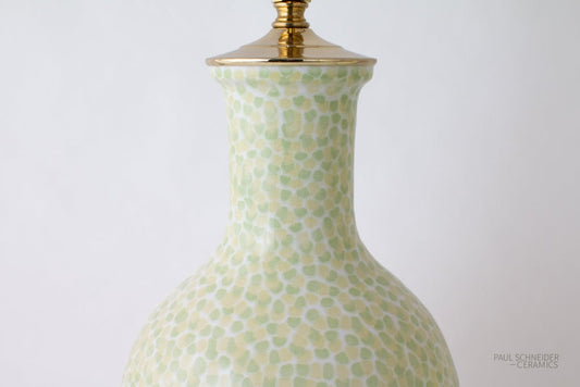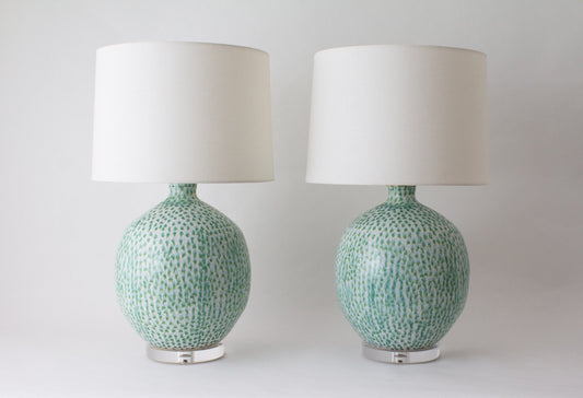Deep shades in this collection will add calmness and elegance to your workspace. Green beautifully complements all wooden and nude tones. If you are looking for a piece that will add dynamics and the colors of nature to your office, one of the forest green drip-banded pieces may be your best choice. A classic green desk lamp combines dark green with a wooden base. Choose light shades for a classic yet contemporary result that will brighten your desk.