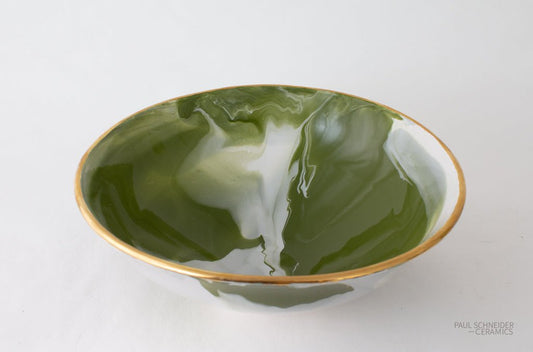 Bowl - Medium | Dappled | Blue-Grey-Green (#6166 + #6265) | Gold Lustre edge