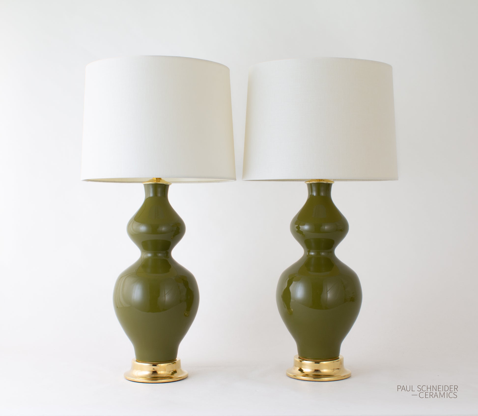 The DOUBLE GOURD Small lamp is shown in our Solid Glossy #1584-L glaze.