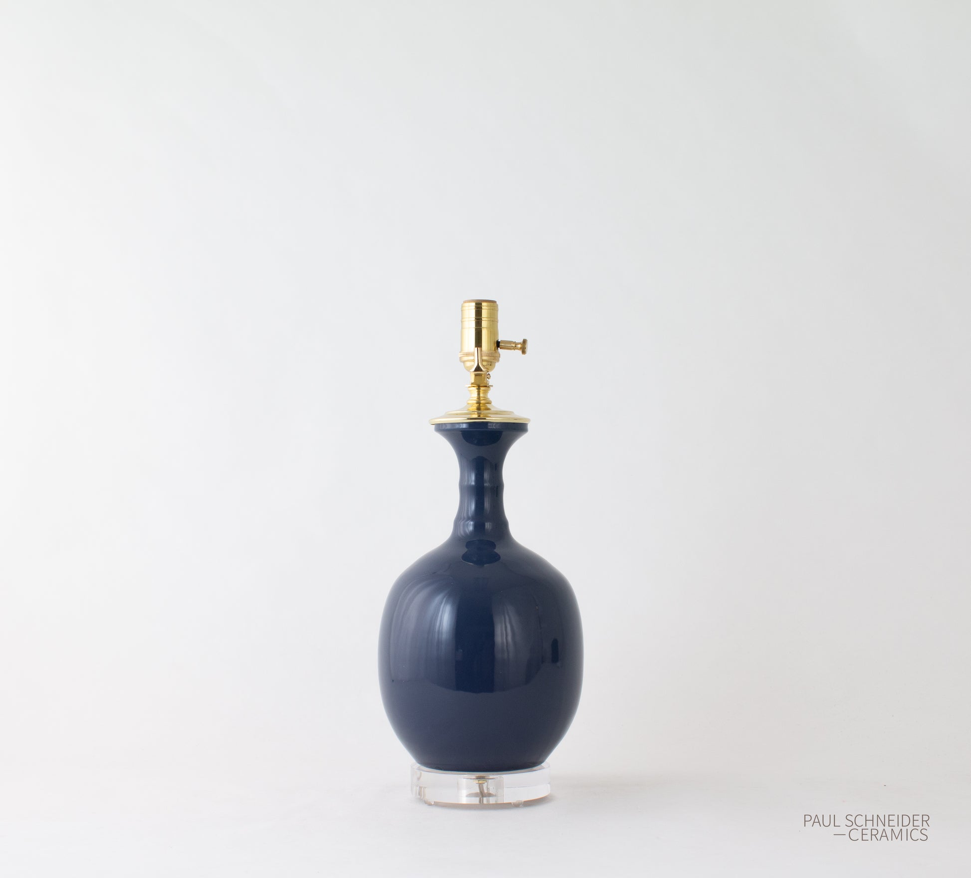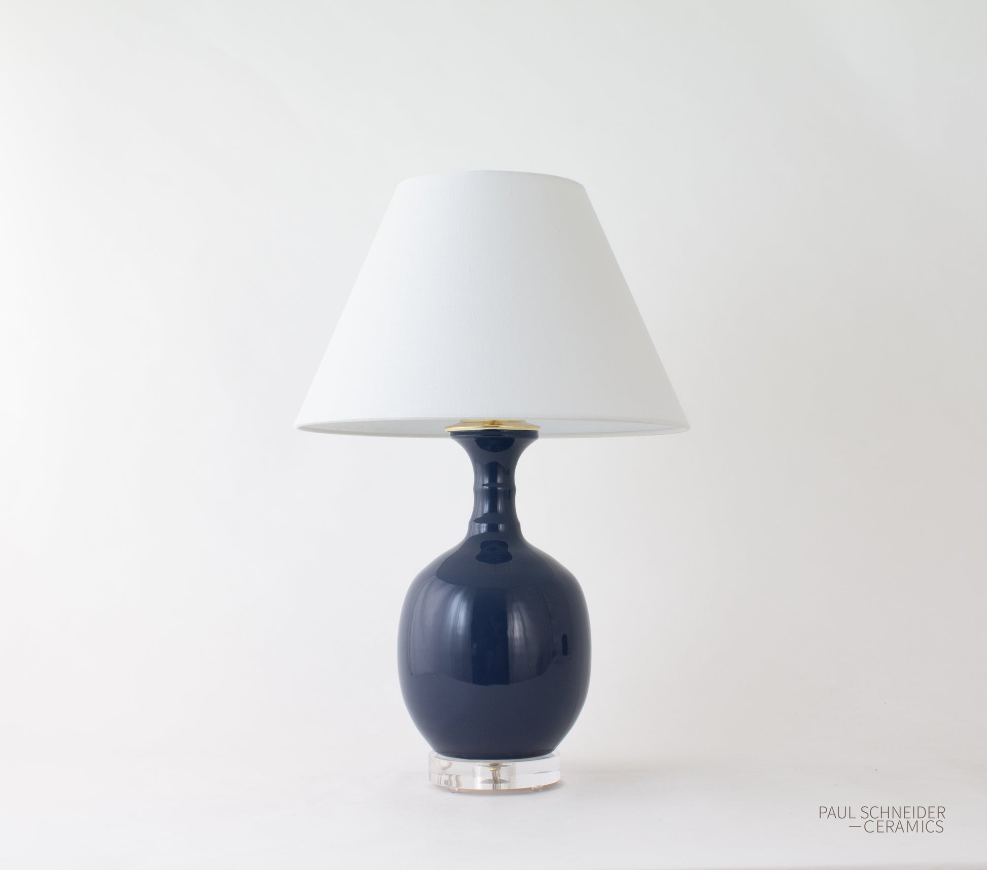 The GEORGE lamp is shown in our glossy solid #1643-L Navy glaze.