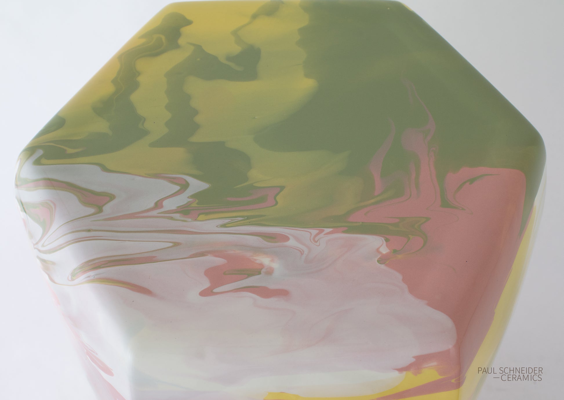 The garden stool is shown with our geode Ivory+Sage+1568+1561 glaze.