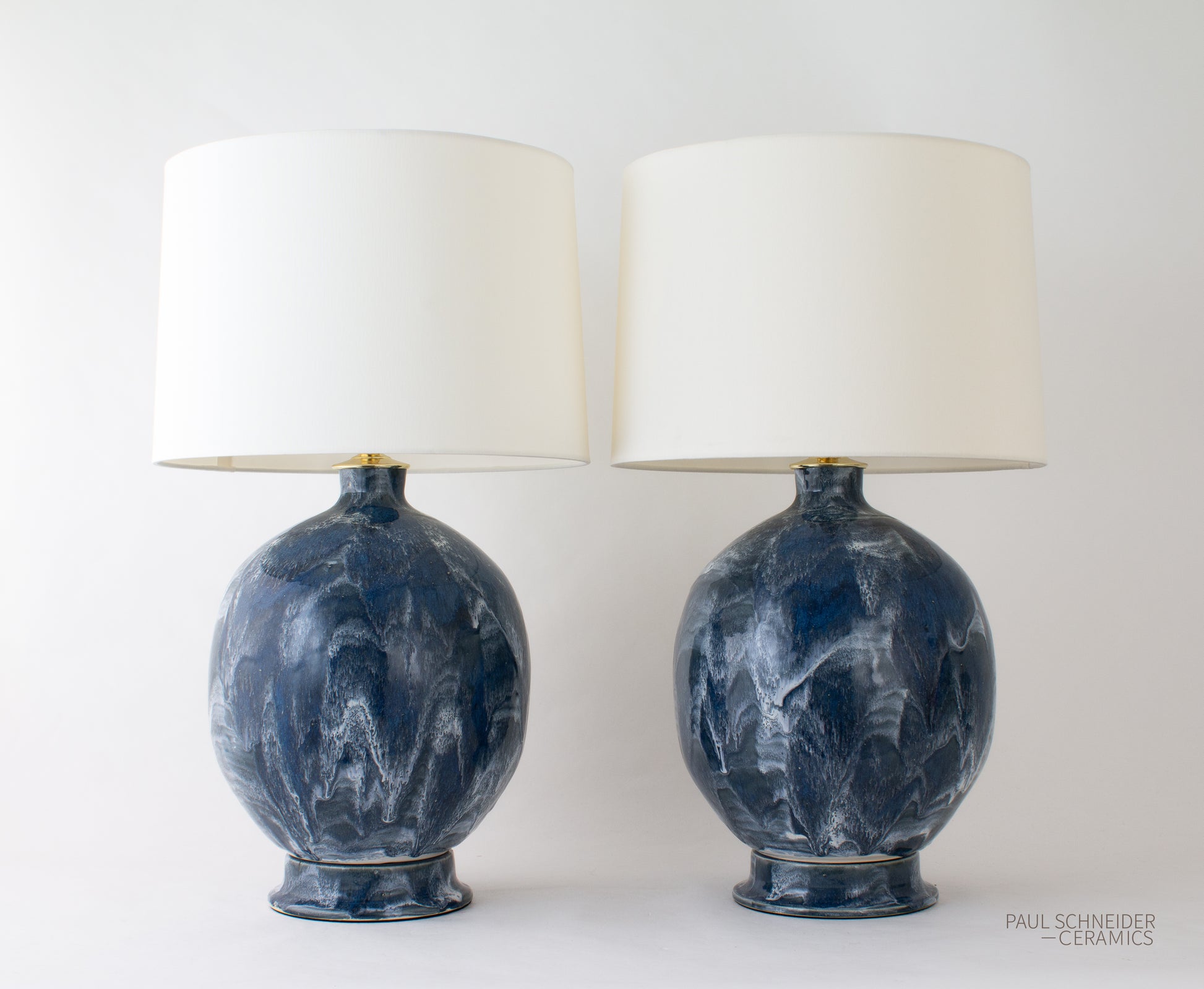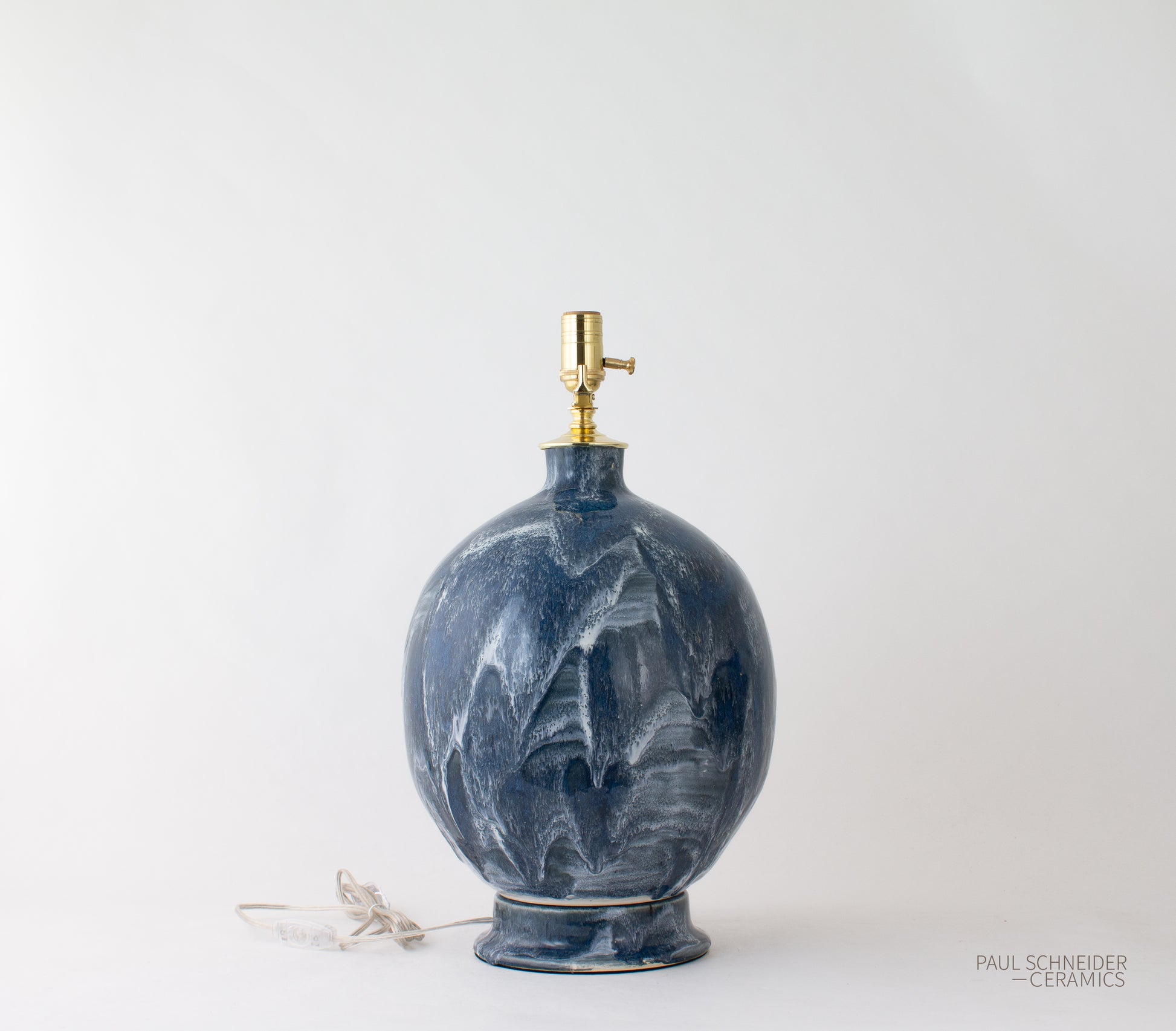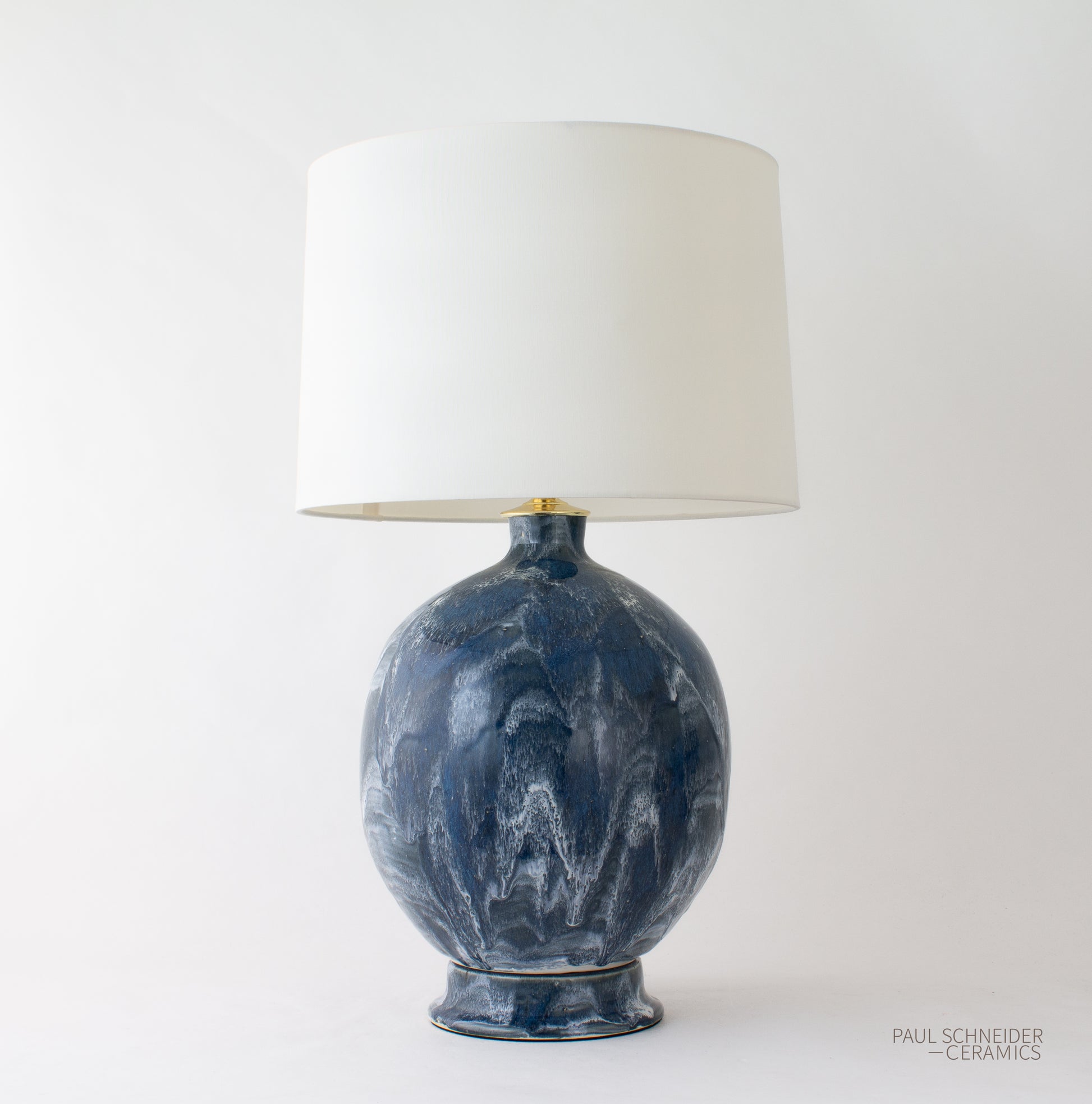 The MARFA Round lamp is shown in our Navy Drip glaze.