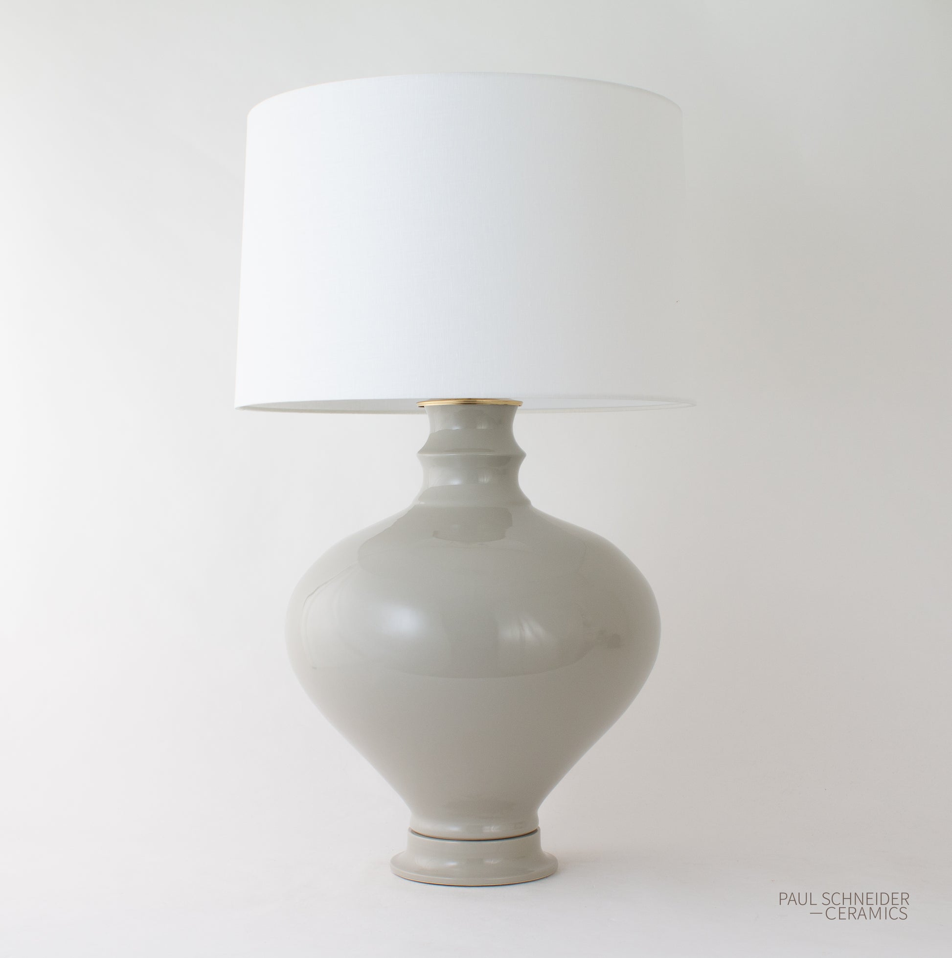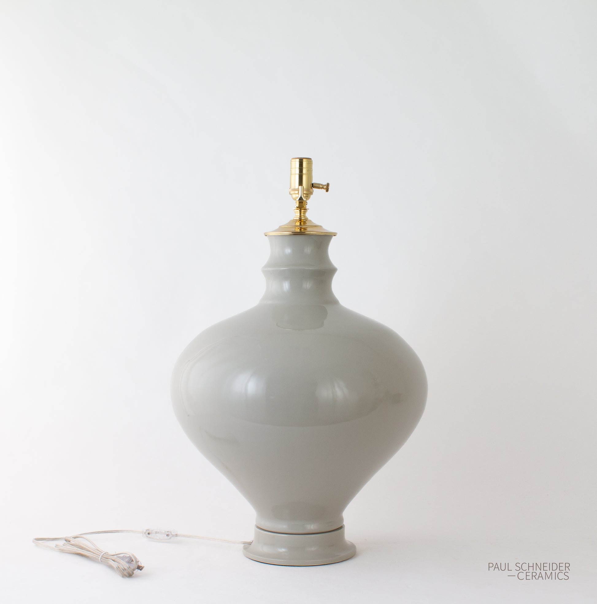 The PADRE lamp is shown in our Solid Glossy #1077-L fossil grey glaze.