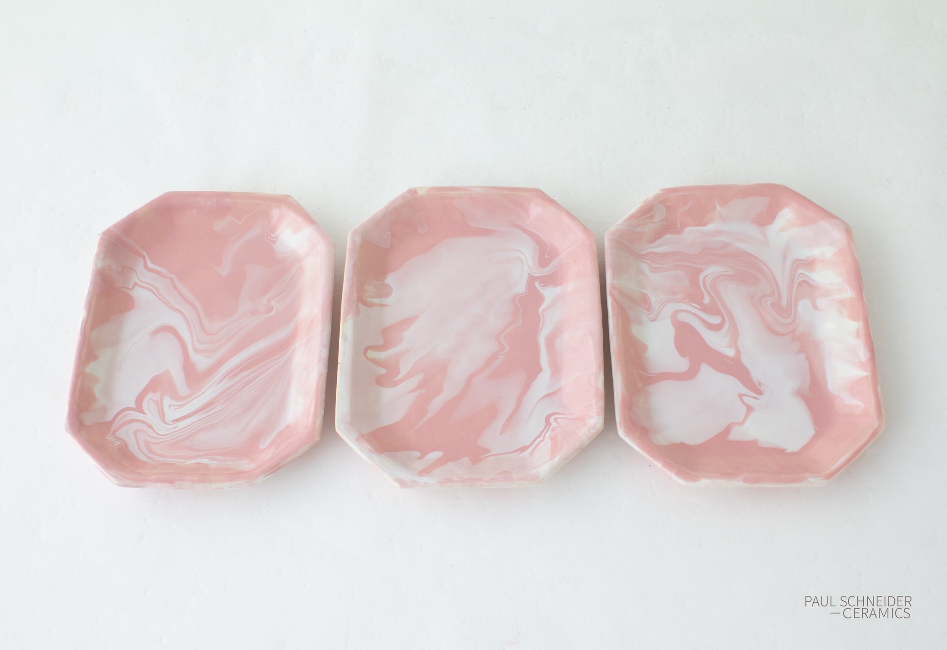 Subtle variation between glaze schemes on each tray.