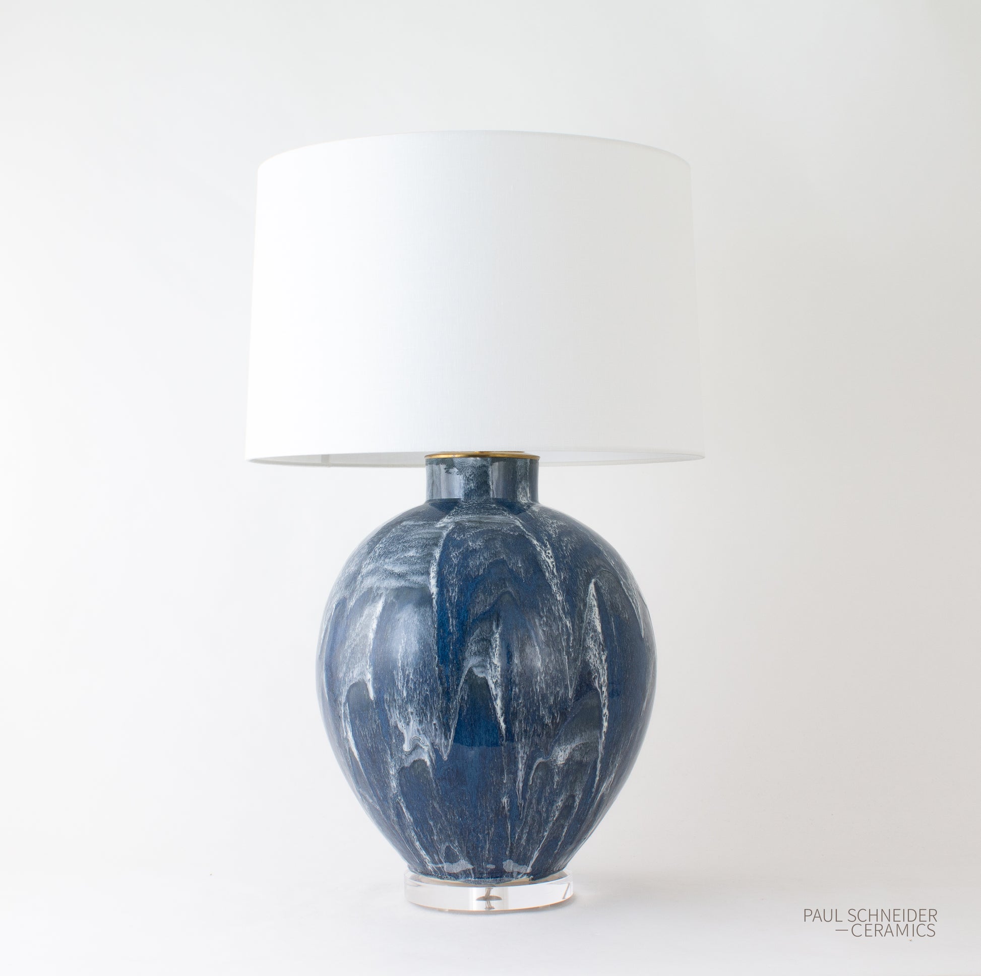 The VALENTINE lamp is shown in our navy Drip Brushed glaze.